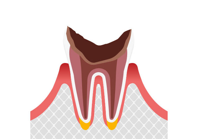 この状態まで進行すると、歯の神経があった部分(部屋)に感染を起こして根っこの先に膿をためることもあります。